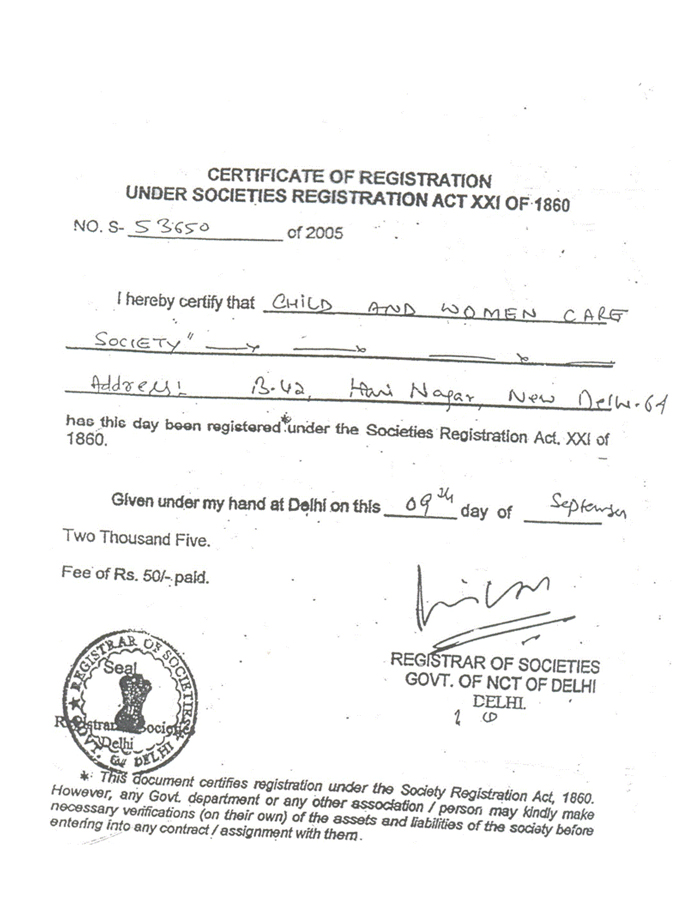 Four physically challenged children namely Diksha [age 2 years] ,Aryan [age 2 years], Ishika [age 5] & Piyush [age 8] belonging to economically weaker section of Sangam Vihar locality were helped by CWCS to get free Rolater- a devise used for walking through a Government agency.